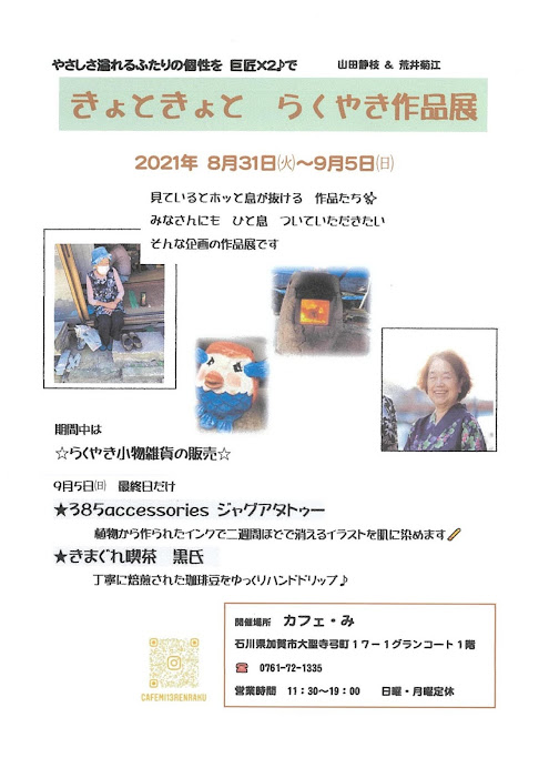 8月31日(火)より、加賀市大聖寺弓町にある「カフェ・み」にて、